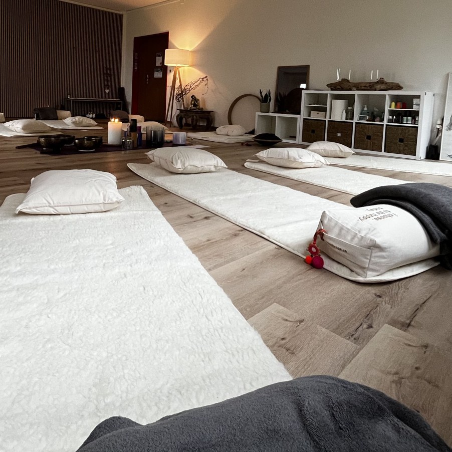 Fürs Klangbad in der Gruppe darfst du Bequeme Kleidung und alles was du brauchst um es dir so richtig gemütlich zu machen mitbringen. (evtl. auch ein Augenkissen oder Tüechli für über die Augen)